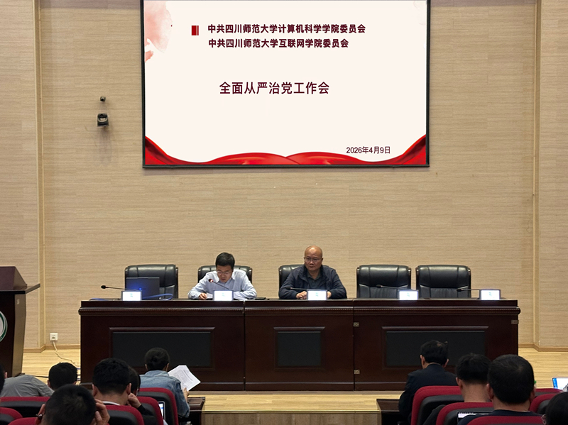 4月9日,四川师范大学计算机科学学院与互联网学院在成龙校区图书馆学术报告厅联合召开2026年度春季学期全面从严治党工作会。学院党委委员、纪委委员、各党支部书记及全体教工党员参会,非党员干部和教师列席会议。学院党委书记向茂甫主持会议。